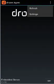 Start the drozer Agent, press the menu button, and choose 'Settings.'