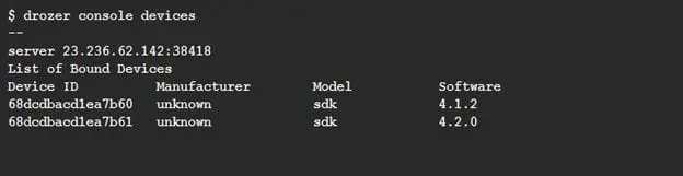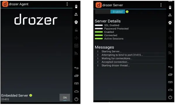Drozer makes use of this server throughout exploitation to host the resources required to complete the exploit and deploy an agent to a device and to receive connections from compromised devices.