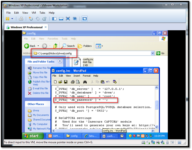 7. Go to the "C:xampphtdocsdvwaconfig" folder and open the "config.inc" file in Notepad.