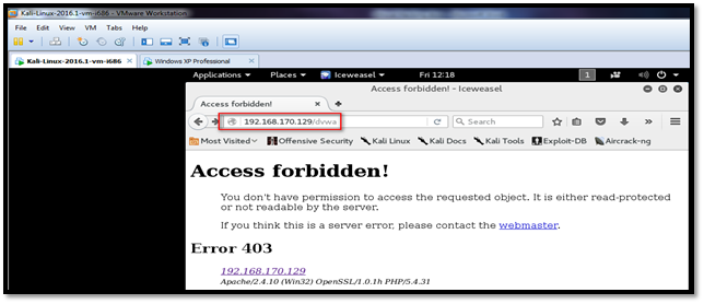 In case while accessing the DVWA application from Kali Linux or BackTrack, you encounter the "Access forbidden" error like this: