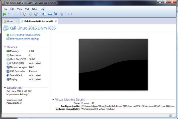 Kali Linux is a Debian-based powerful penetration testing platform used worldwide by the penetration testing professionals. Kali contains many tools which can be used for information security related tasks. Virtual Image of Kali Linux can be downloaded from here.