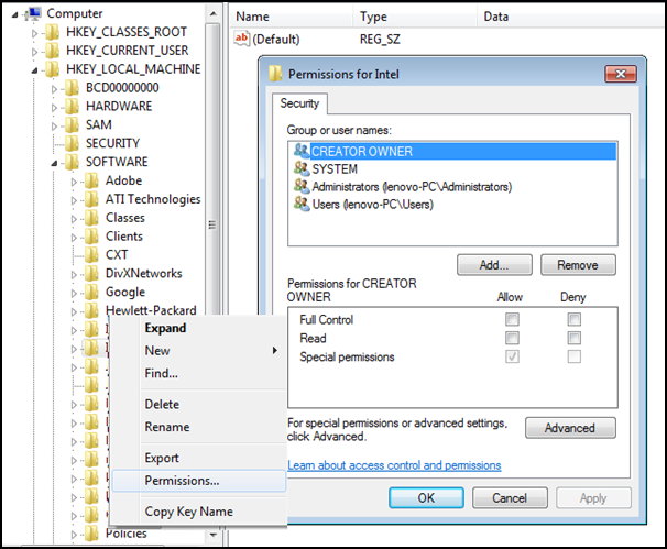 Which registry key are being accessed and permission on that key are two points of interest for a hacker and security tester in term of unleashing this entry point. You do not have access to source code, so it is almost impossible to determine which registry key is being accessed. For this, Process Explorer tool, you can judge which key is opened, read, or written for your application process. For determining permission, on the other hand, regedit.exe utility discloses the information as: