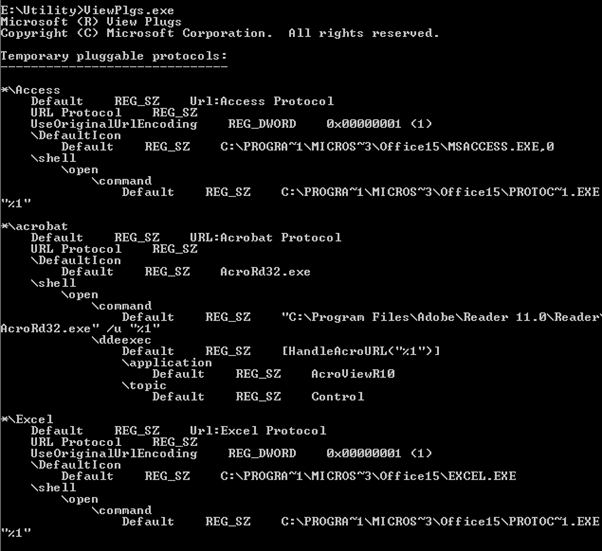 Figure 7: ViewPlgs.exe to view protocol handlers