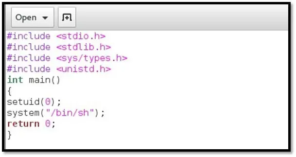 Step 11: Create a C file (as given below) and compile it, using GCC on a Kali machine.