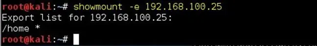 showmount -e 192.168.100.25
