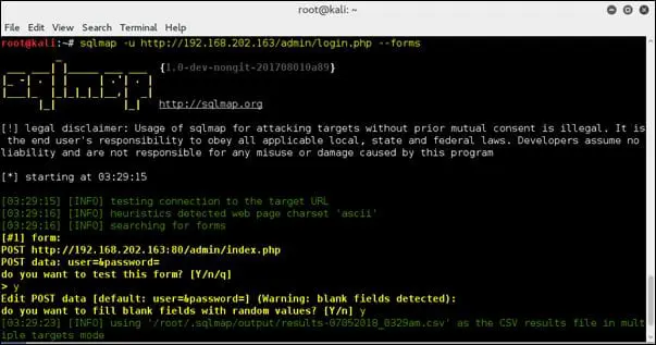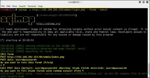 Now pages with large number of form fields can be tested effectively using --form and --batch option together. This will parse the page and check for form fields and automatically provide the input on behalf on the user.
