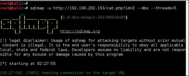 As we know SQLMap is majorly used for SQL injection exploitation, let's see some of the commands to enumerate the database through an application vulnerable to SQL injection.