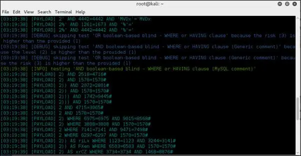 The batch command is used for non-interactive sessions. When we are trying to scan something, SQLMap may ask us to provide input during the scan: for example, while using the crawl feature, the tool asks the user if the user want to scan the identified URL. When --batch is defined in the command, the tool uses a default value to proceed without asking the user.