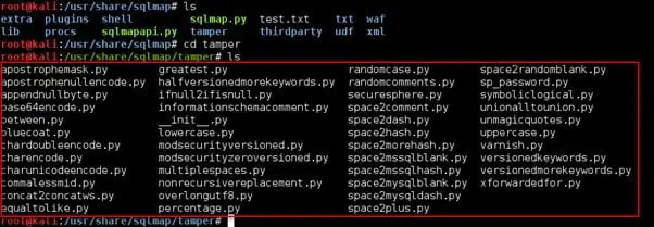 Once the WAF is identified, we can use the tamper script to attack the WAF-protected applications. The tamper script can modify the request to escape WAF detection. The scripts can be found under /usr/share/sqlmap/tamper/ directory.