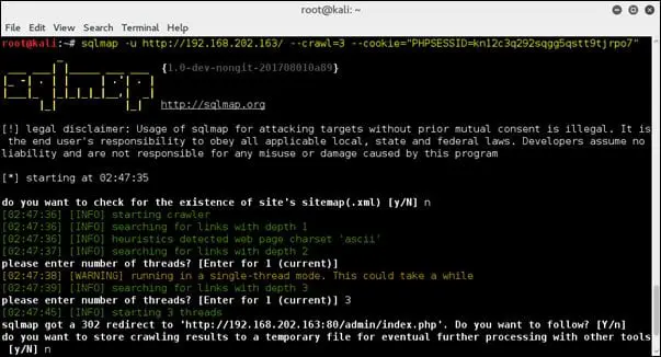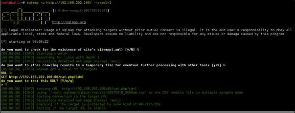 sqlmap -u http://192.168.202.160/ --crawl=1