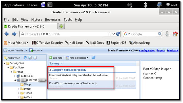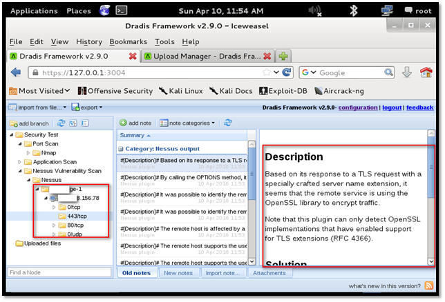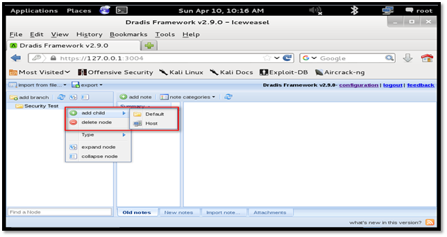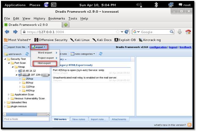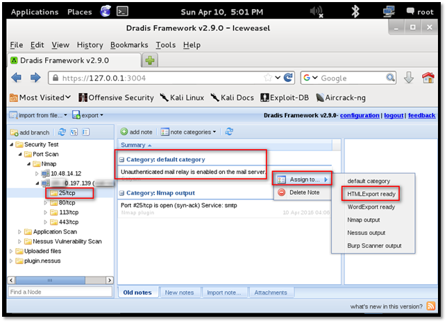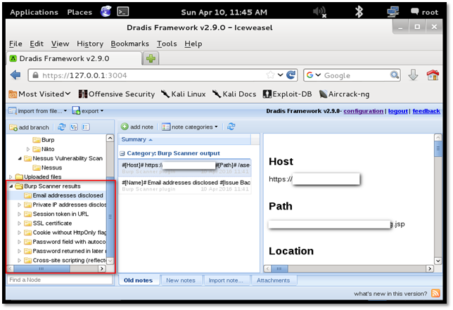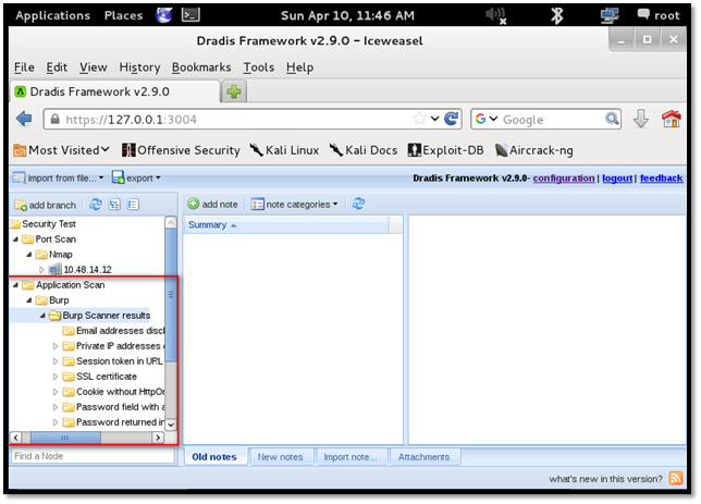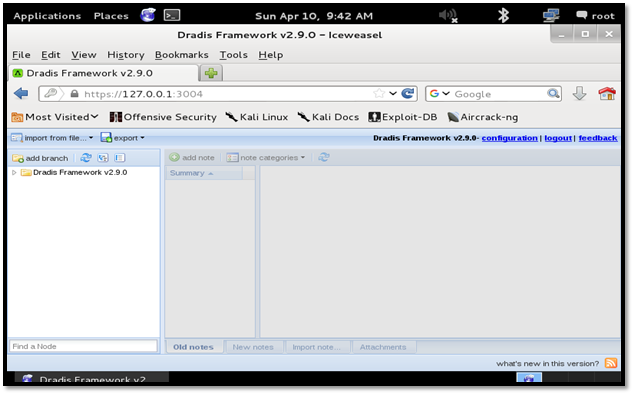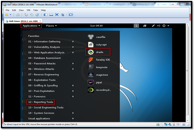 Launch the Kali-Linux tool. Click on "Applications", go to "Reporting Tools" and click on "Dradis".