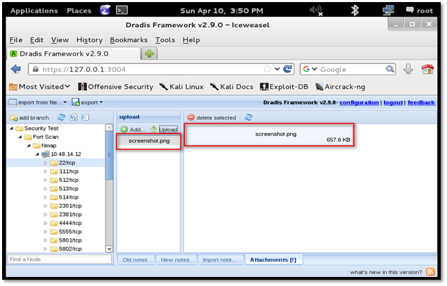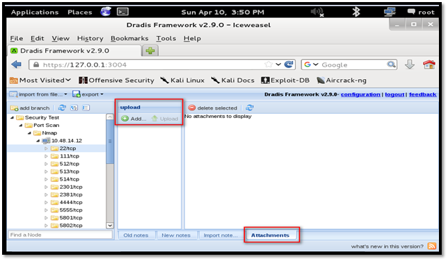 Similarly, we add a screenshot for any port or service. Go to the "Attachment" tab, Click the "Add" button and select a file to upload.