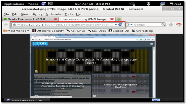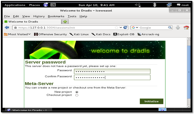 Dradis is a self-contained web application. Hence, it will automatically open in the browser. The URL is https://127.0.0.1:3004.