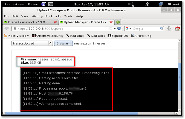 Click the "Open" button and Dradis will start validating and parsing the file.