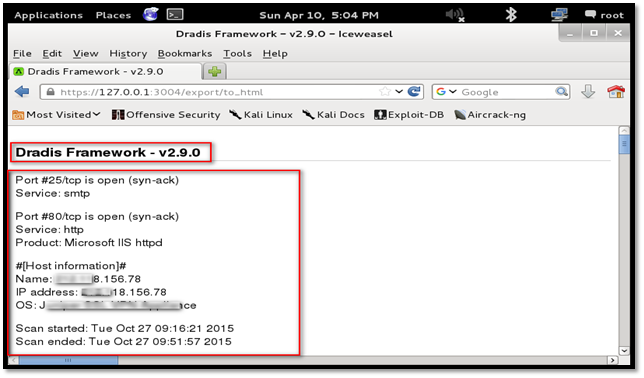 The result of the scan is added to the host "65.61.137.117," as shown in below screenshot.