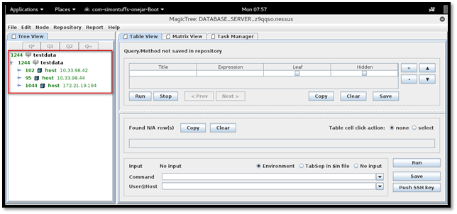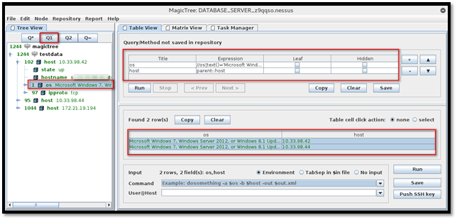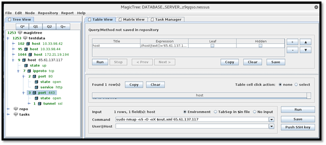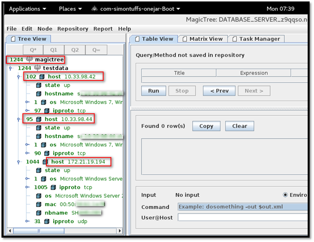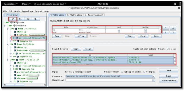 Data analysis: MagicTree allows querying the collected data and feeding it to shell commands