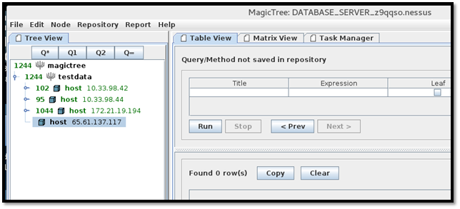 MagicTree allows querying the collected data and feeding it to shell commands. Select any data from the above table. There are different queries available: