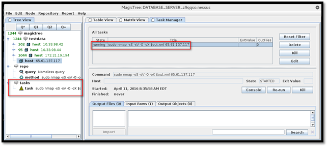 Task execution: MagicTree supports running shell commands straight from the GUI, capturing command output