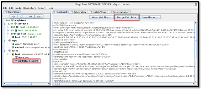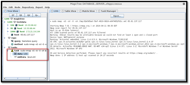 Once the scan is finished, we can see the log and XML output under "task" node.