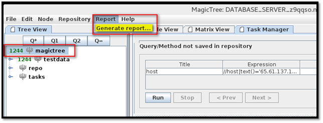 Magic Tree has the option to generate the report in Word format. To generate the report, select a node, navigate to "Report" and click the "Generate report..." option.