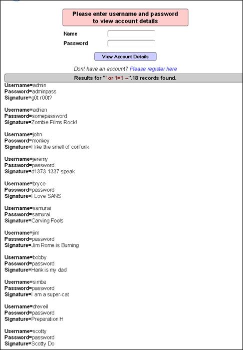 Pick the suffix in the example, give it to the authentication, and watch the result. The picture below shows the result when I gave jonnybravo' in the username.