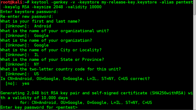 Now we have signed our pentest.Apk file successfully and it can be run on any Android device. Our new filename is Android.apk after the verification with zipalaign.