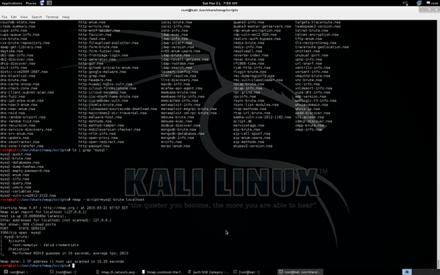 nmap --script=mysql-brute localhost.