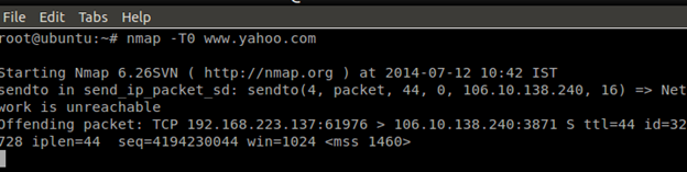 With 0 option we can do a paranoid scan for Nmap, which is a very slow scanning option so that the firewall or IDs are not able to block that request and will decrease the noise for the Nmap probe.