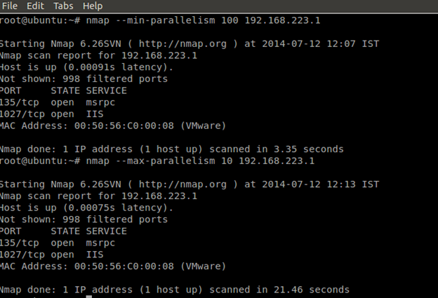 There are two options for Nmap to do parallelism, like min and max.