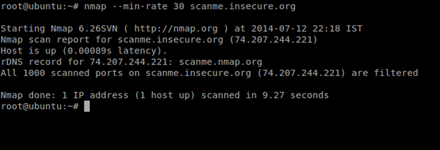 syntax: nmap --min-rate [number] [target]