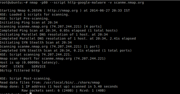 nmap -p80 --script http-google-malware -v scanme.nmap.org