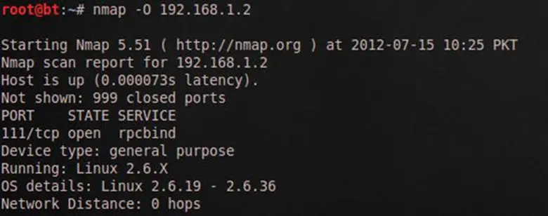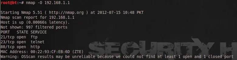 Nmap has a database called nmap-os-db. The database contains the information of more than 2,600 operating systems. Nmap sends TCP and UDP packets to the target machine and examines the response by comparing the result with the database. The Nmap operating system discovery technique is slightly slower then the scanning techniques because OS detection involves the process of finding open ports.