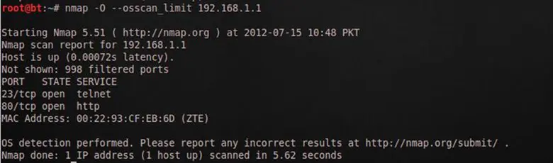 This is an undesirable situation, and it is good to limit the operating system scans if Nmap is not sure about the OS. If Nmap is not sure about the OS, then there is no need to detect by using –osscan_limit.