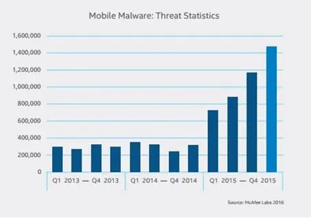 Figure 1: Mobile Malware: Threat Statistics – McAfee Labs 2016