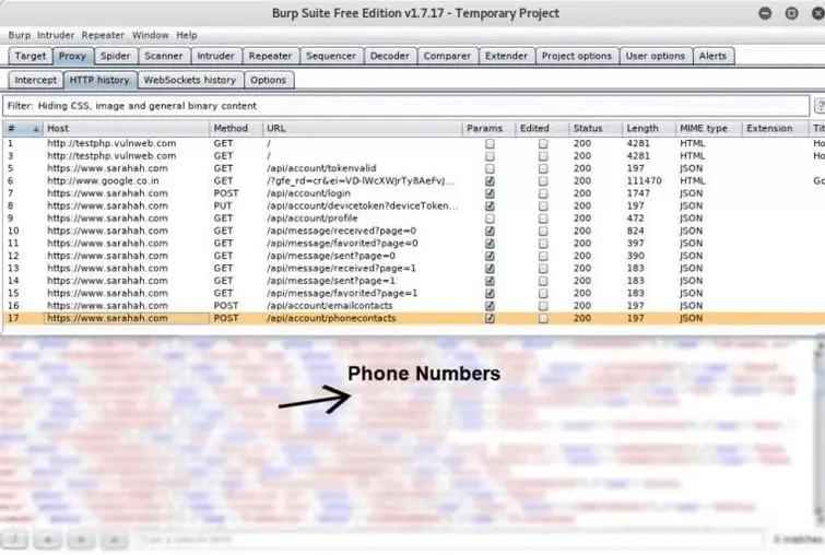 Once you open a mobile app on your Smartphone, you can then intercept all the traffic between your Smartphone and the web server of which you are currently accessing. This is illustrated in the screen below: