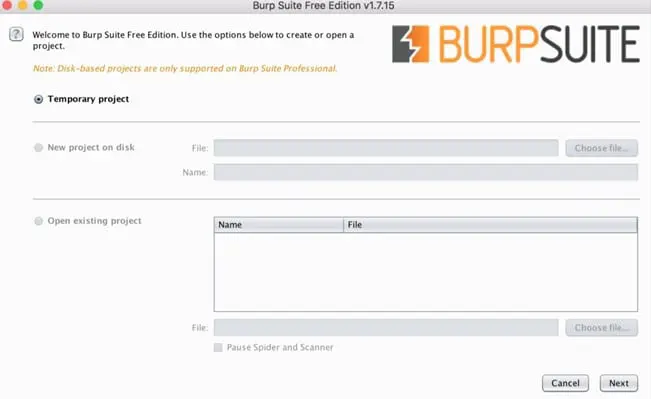 After running Burp Suite, the following screen will appear: