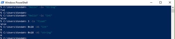 And finally, with some examples of type operators like the "-is" that help us to test the type of a variable/value and return a True or False state, and "-as" that convert to us the type of an object: