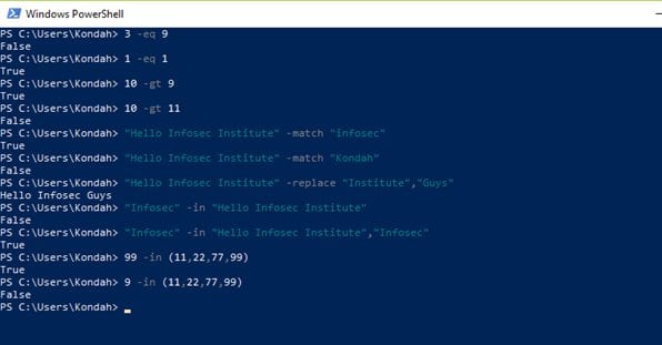 Figure 1: Operators in PowerShell