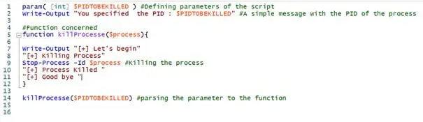 Here's a simple script that will make us able to kill a specific process, based on a parameter which is the PID of the process that we want to kill.