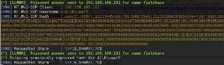 In this sense, Inveigh and Responder tools can be used as a man-in-the-middle agent on the network. The figure below shows a user NTLMv2 hash collected by Responder during the spoofing process.