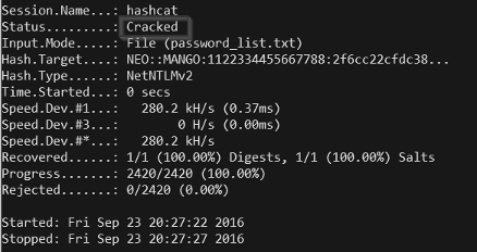 When you see “Cracked” on your screen, your NTLMv2 hash was broken and found.