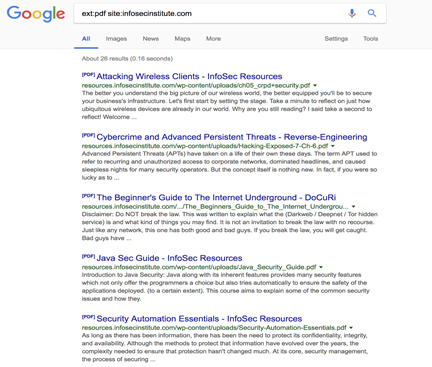 Below are some of the operators used in Google dorking: