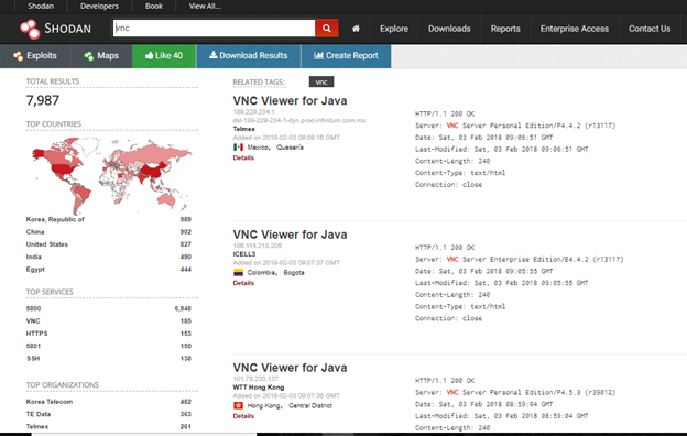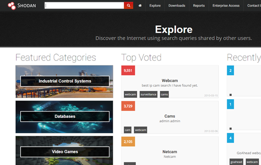 Shodan also gives the top most used searches by the community, like below: