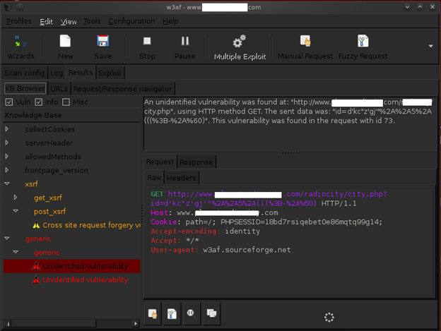 Once the scan is completed, the W3af framework shows a details information about the vulnerabilities found in the target website which can be compromised accordingly for further exploitation.