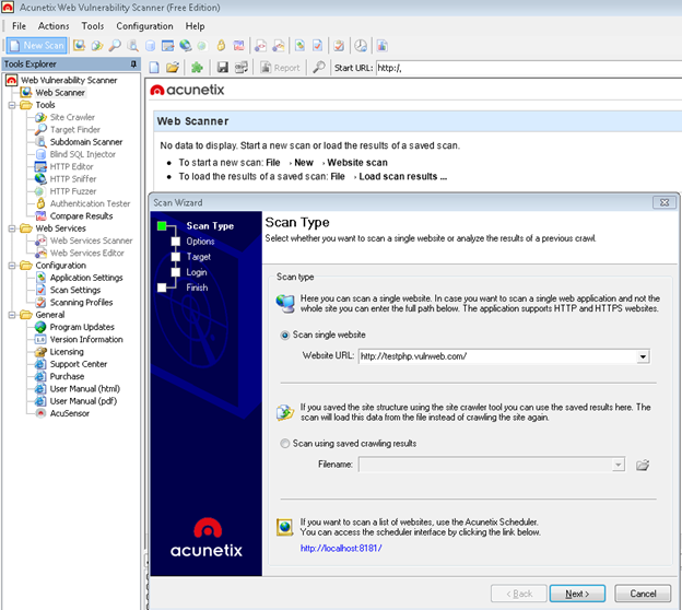 Acunetix is another famous website vulnerability scanner. It comes in both free and commercial version. To download the scanner, signup in their website and you will be getting the download link. The drawback in the free edition, we cannot perform a full web vulnerability scan.