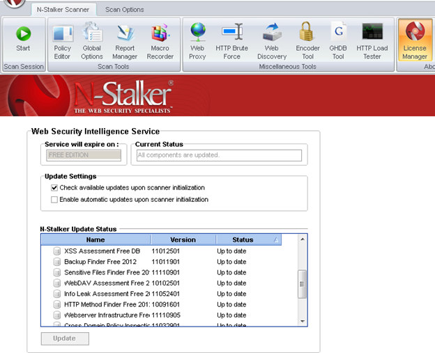 Before scanning the target, go to "License Manager" tab, perform the update. Once update, you will note the status as up to date.