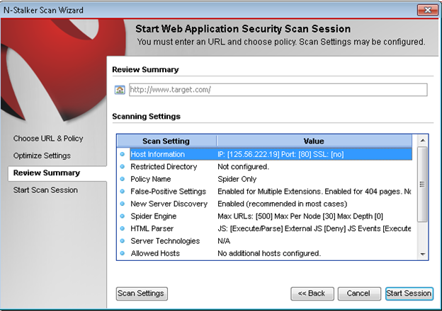 Once, the option has been selected, next step is "Optimize settings" which will crawl the whole website for further analysis. In review option, you can get all the information like host information, technologies used, policy name, etc.