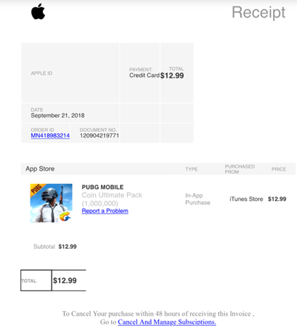 On an individual level, many Apple users received fake iTunes bills for purchases they didn’t make. Phishers duplicated an authentic Apple email and also placed the company’s logo on the invoice, making it difficult to determine whether it was legitimate or fake. Below is an example: